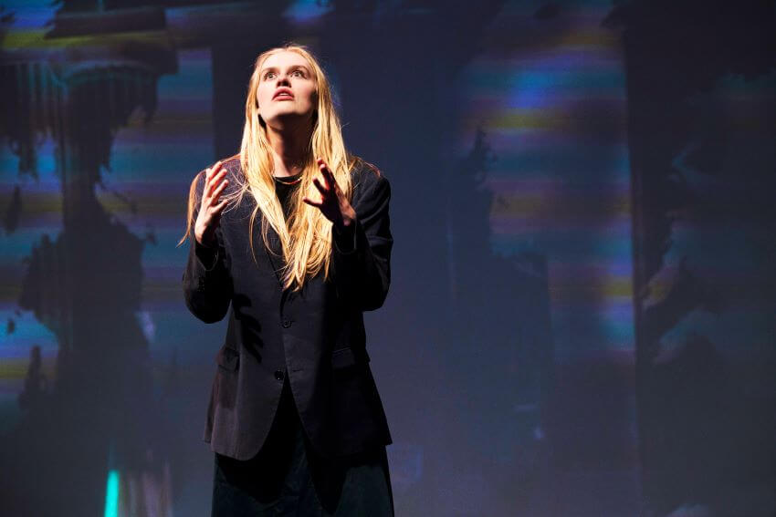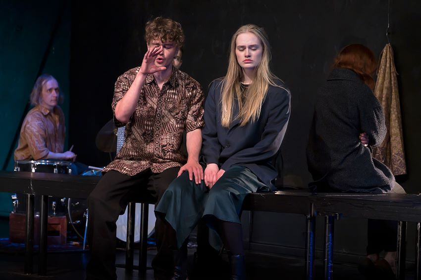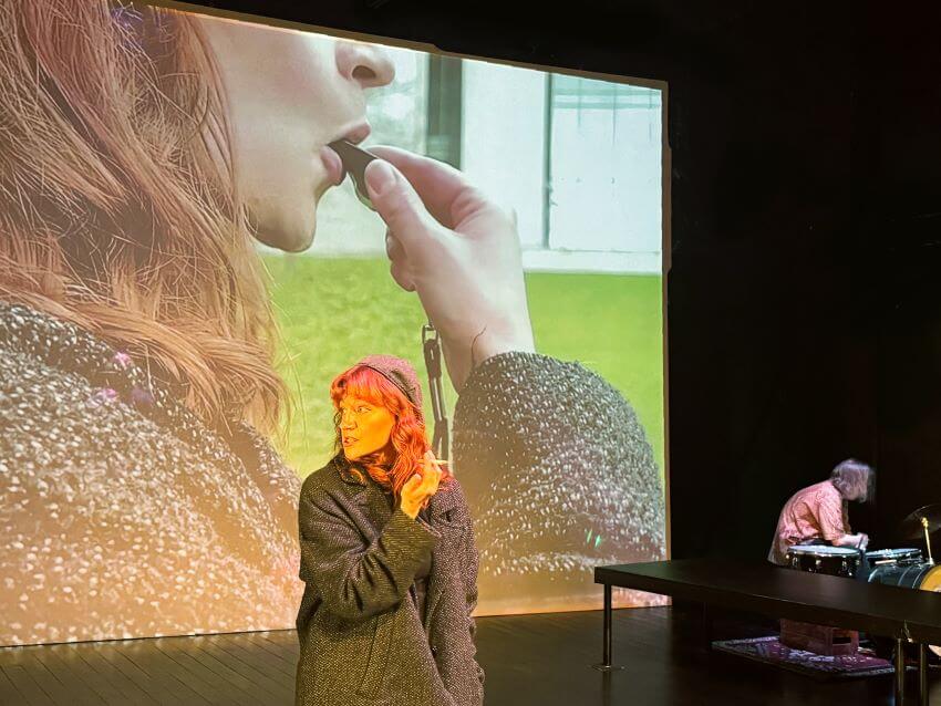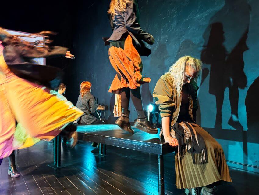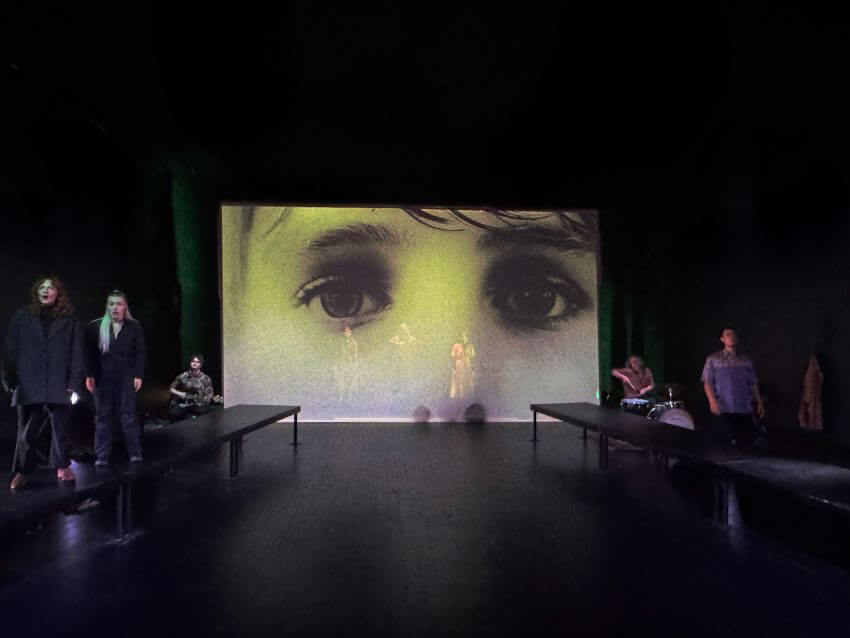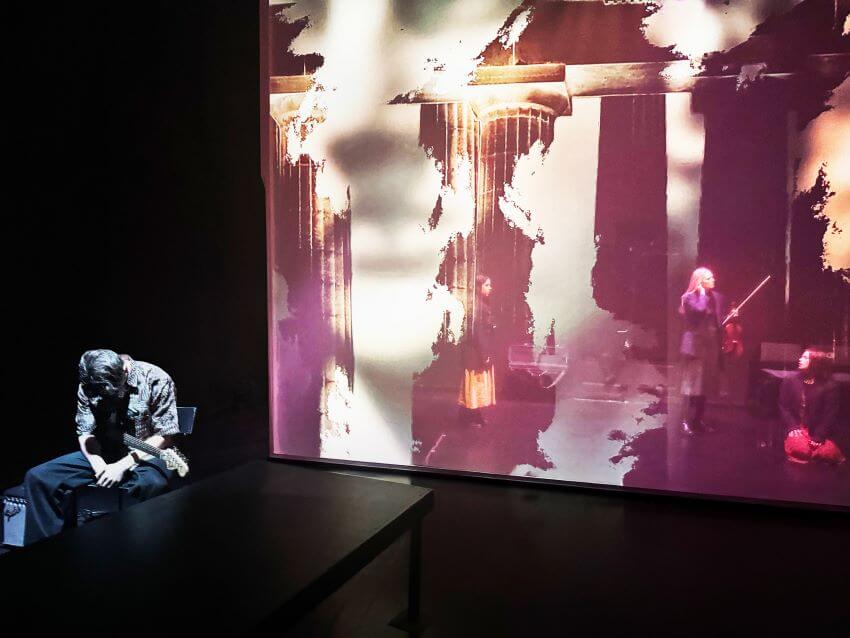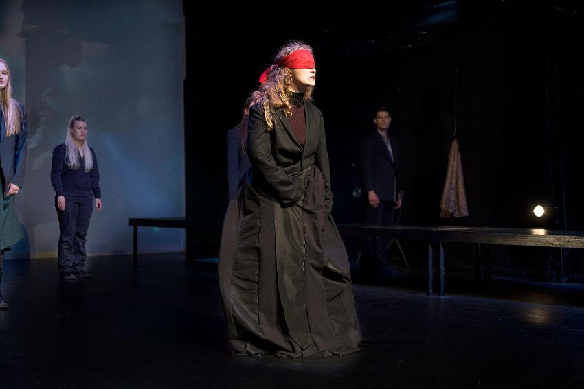 The production examined the play from the perspective of social injustice, gendered and racialized marginalisation, and (violent) resistance in a cynical world, reflecting on perspectives which still resonate today. The transcultural stance, with acting students from different parts of the world, re-situated Medea’s tale of abandonment and revenge within an ecumenical framework of shared grief and historical wound. The hybrid chorus—partially live, partially projected in film— built a multi-lingual sonic tapestry through which pain, exile, and survival were collectively processed. The performance was enhanced by a transdisciplinary form and aesthetic, mixing physical theater with an original music score performed live, as well as with film and video projections, sculpting a postdramatic landscape where the ancient text was revisited with irony as a form of communal, post-tragic lament.